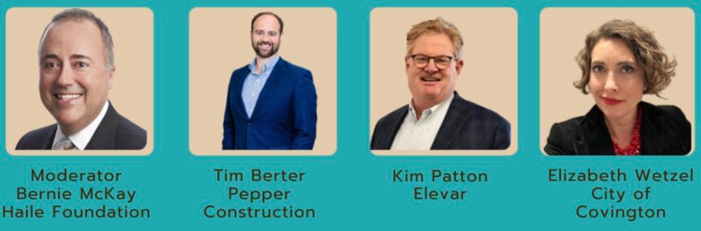 Moderator of the discussion will be Bernie McKay, president of the Haile Foundation, which has moved its headquarters into downtown Covington. Bernie spent 28 years as an attorney with Frost Brown Todd LLC before assuming the presidency of the foundation.
