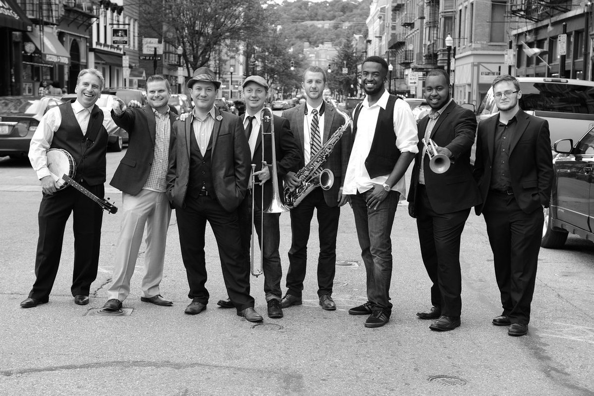 Formed in Cincinnati three years ago, the group includes vocals, horns, banjo, electric guitar, drums, bass and keyboard. They characterize their style as New Orleans Cajun/Creole from the 1930s to the present, but they also perform other styles, including 1920s traditional jazz favorites to 1970s funky dance songs.