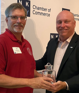 Swan Floral’s Jeff Schreiver was on hand to receive the Community Award from Brent Cooper, NKY Chamber President and CEO, at Eggs N’ Issues at Receptions Banquet and Conference Center in Erlanger.