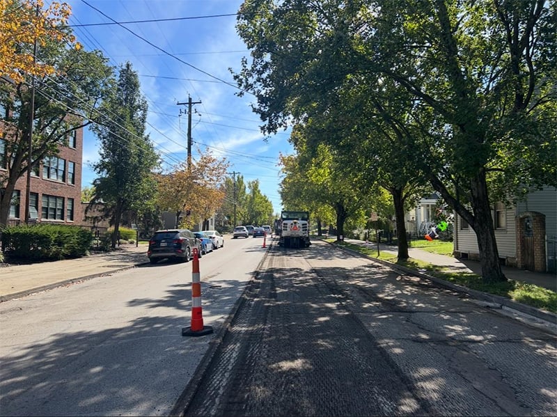 Contractors began milling operations on Friday, October 10, with work expected to continue through Tuesday, October 14, weather permitting. Paving is scheduled to follow from Wednesday, October 15, through Friday, October 17, and re-striping the street with a double yellow line is planned for Friday, October 17.