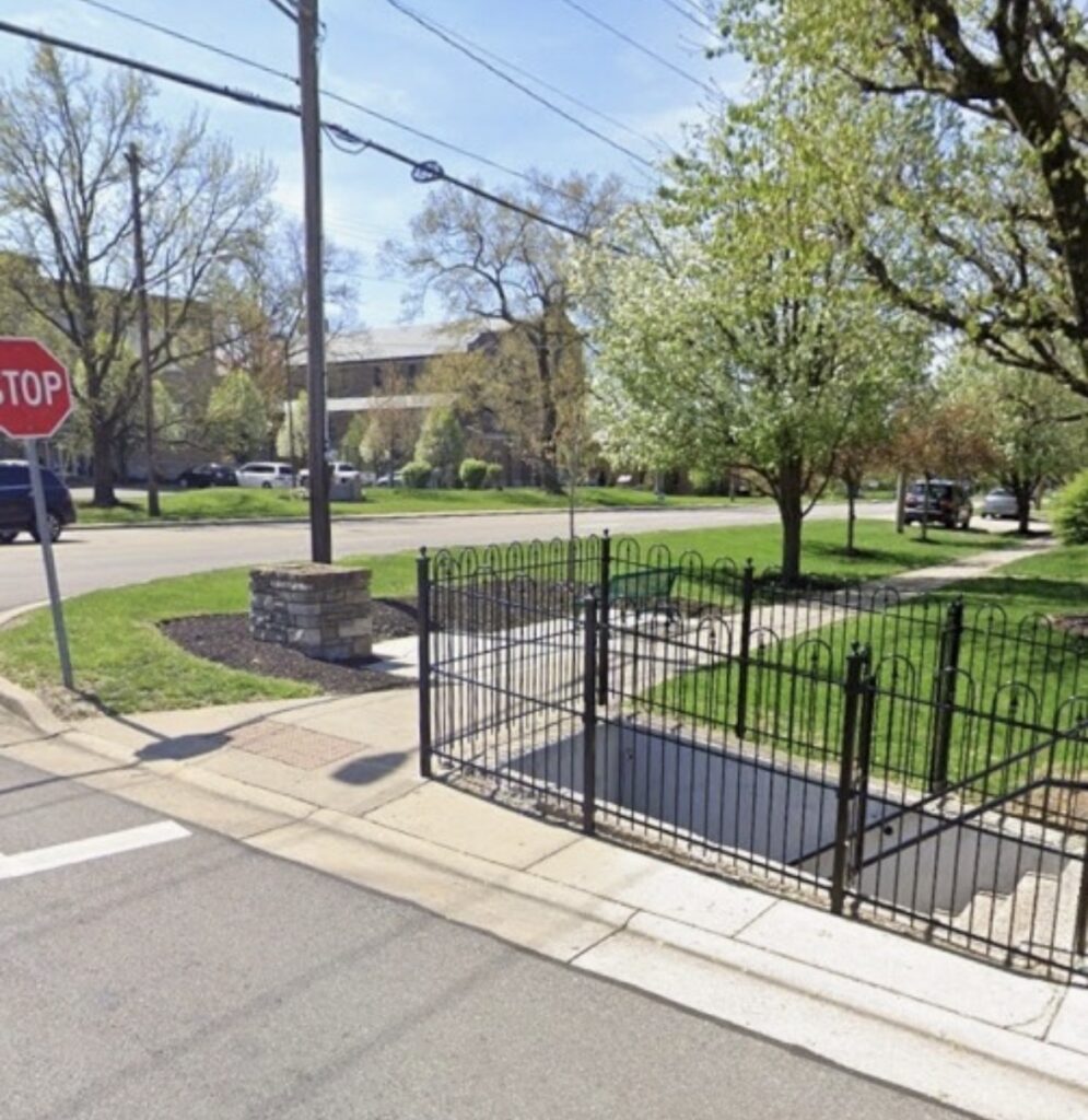 The beginning of the stretch of sidewalk to be widened between Burdsall and Plesant Ridge with the underground tunnel entrance at Burdsall (Photo by Patricia Scheyer/NKyTribune)