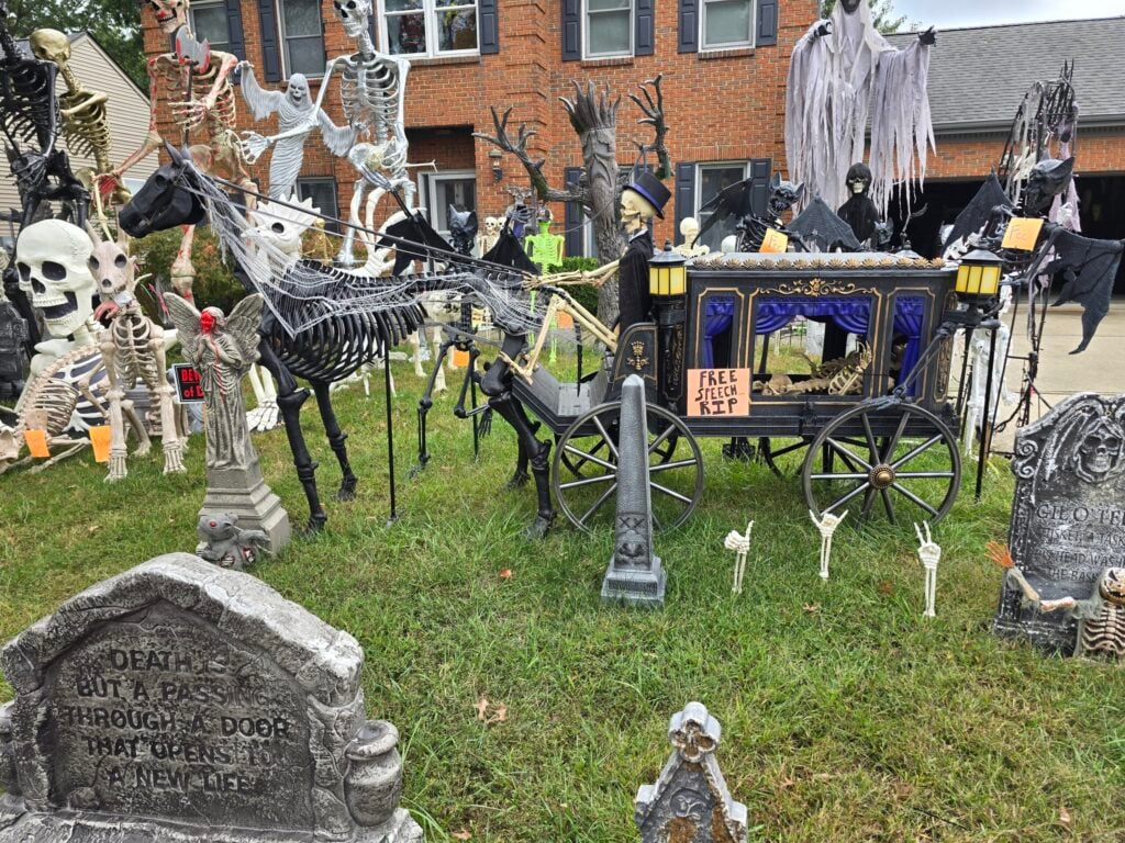 He created Dead Spring Cemetery – a play on Cold Spring — on his front lawn. “We start putting up the display on August 18th, which is the day my mother passed away back in 1999,” he said. “We complete it around the end of September.”