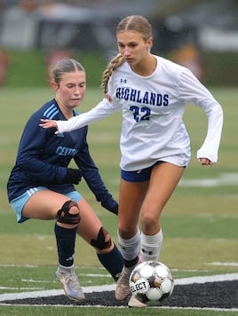 Highlands goalkeeper converts penalty kick to put team in state final; Scott wins tight match in region volleyball semifinals
