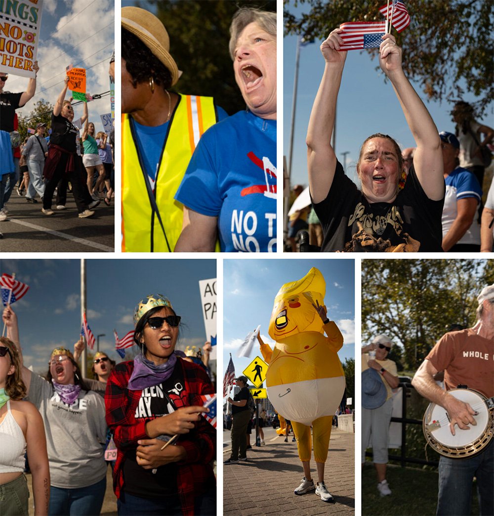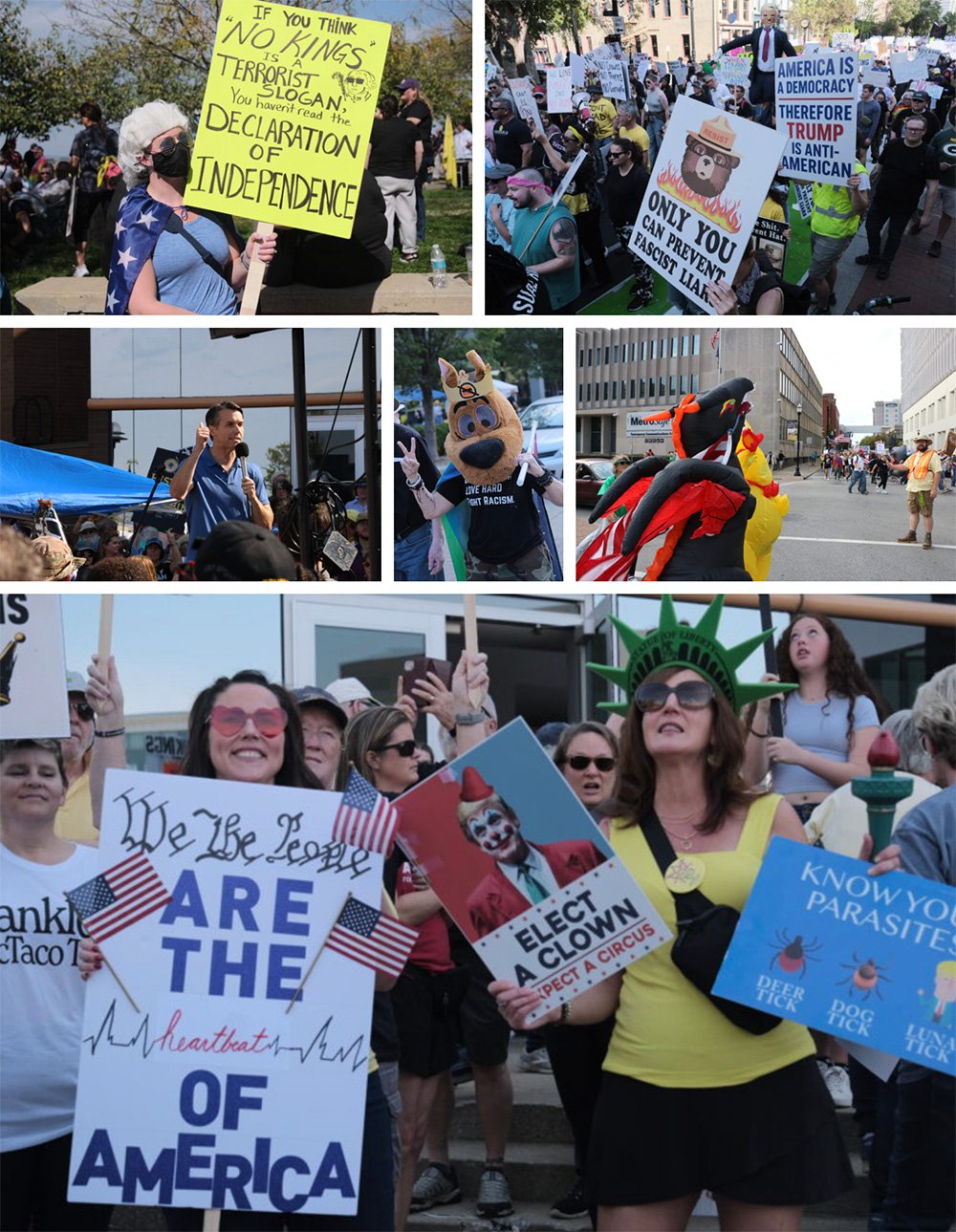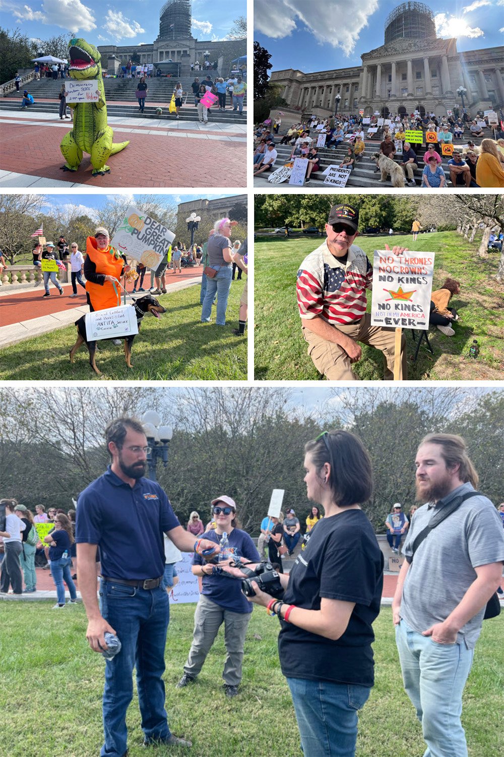 Inflatables and other costumes were in evidence at protests across Kentucky, a nod to the protesters wearing inflatable frog costumes to confront federal immigration agents in Portland, Oregon.