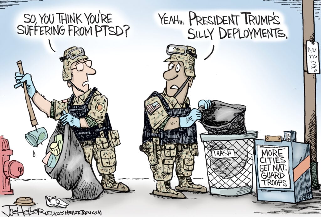 Joe Heller was the editorial cartoonist for the Green Bay Press-Gazette in Green Bay, Wis., from 1985 until being laid off in July 2013. He still draws several cartoons a week and distributes them through his own syndicate. Through Heller Syndication, his cartoons regularly appear in more than 400 newspapers, making him the most successful self-syndicated editorial cartoonist in the nation. His cartoons are reprinted many times in USA Today, Denver Post, St. Paul Pioneer Press, The New York Times, the Los Angeles Times, Newsweek Japan, The Week and The Washington Post. Joe’s cartoons have won numerous distinctions, including 10 Best of Gannett awards, eight Milwaukee Press Club awards and two Honorable mentions for the John Fischetti Award. He lives in Green Bay with his wife, Pamela. He is a regular featured cartoonist for the NKyTribune.