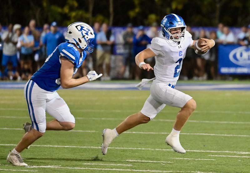 The Colonels who had driven 80 yards on 13 plays in just under 5:00 to take their first lead on quick, tough, never-say-die quarterback Cash Harney’s stop-start eight-yard determined dash into the end zone were about to extend their winning streak in Ft. Thomas to a decade.