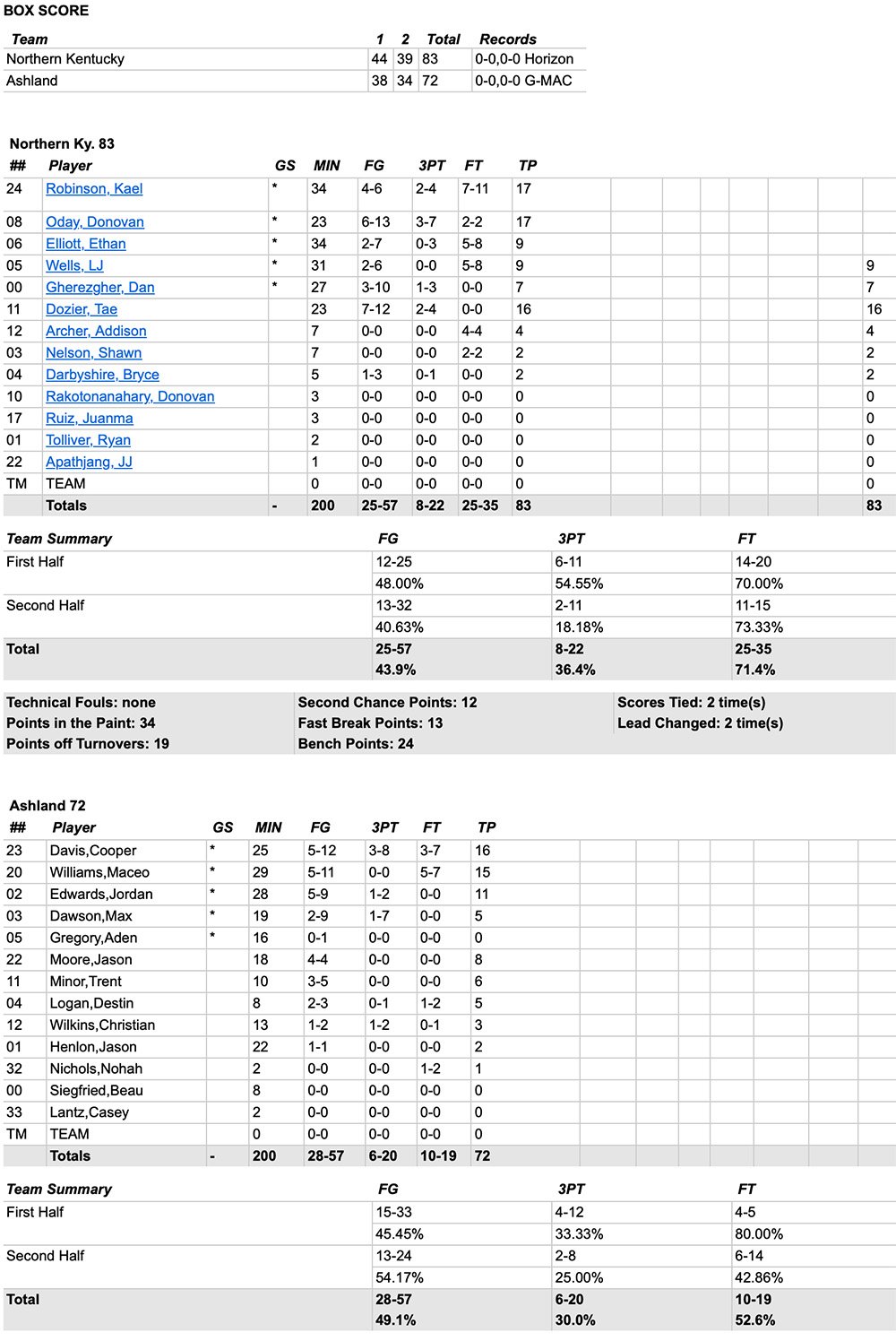 Two transfers led NKU in scoring – 6-7, 220-pound Kael Robinson, the tough inside scrapper from New Zealand with a three-point shot, and 6-2, 195-pound scorer Donovan Oday, a Texan who’s already played at McNeese State and Cal-State Fullerton.