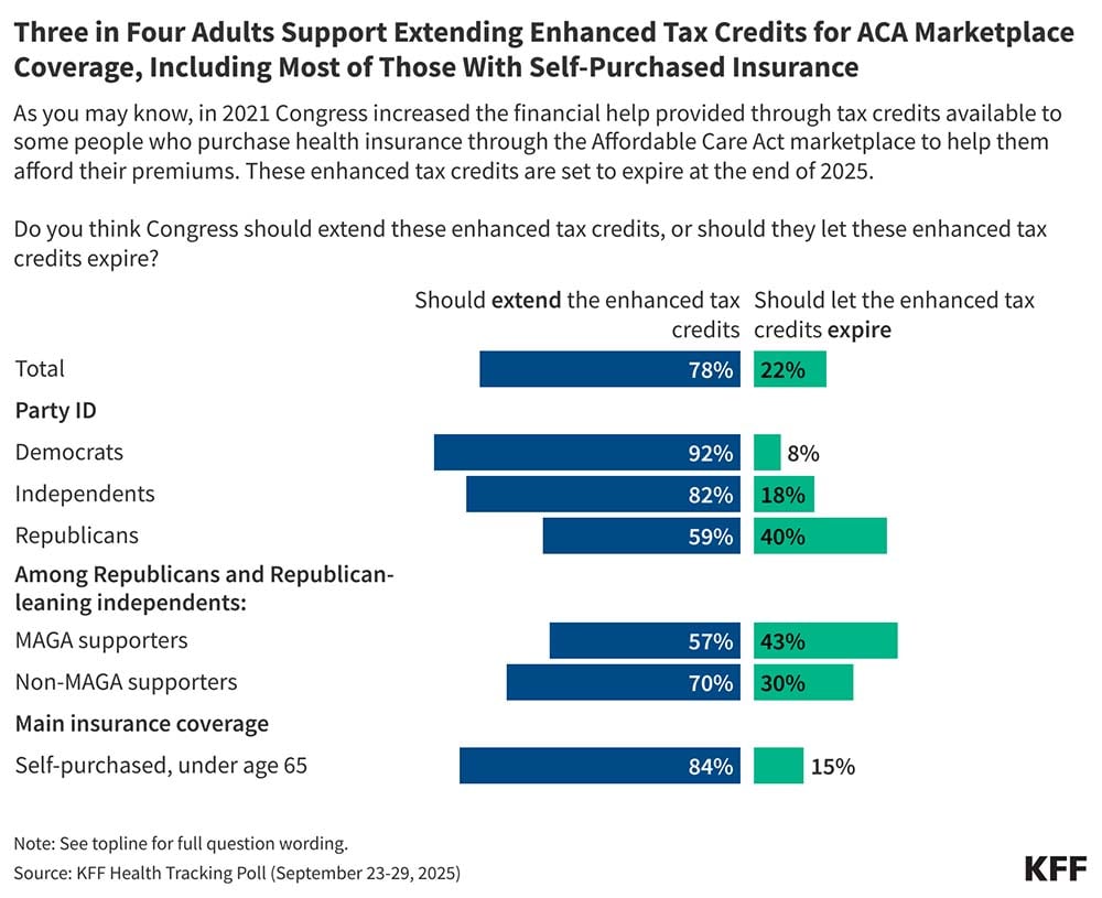 The vast majority of Americans, including Republicans and those who identify as strong supporters of President Donald Trump, want Congress to renew the enhanced tax credits for people who buy their health insurance from the Affordable Care Act Marketplace, according to a poll released Friday.