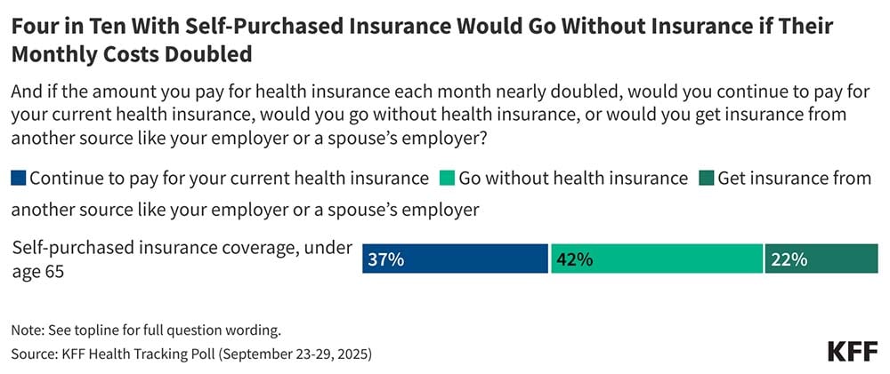 Fifty-six percent were very concerned and 30% were somewhat concerned when told “health insurance would be unaffordable for many people who buy their own coverage” if the enhanced tax credits weren’t extended.