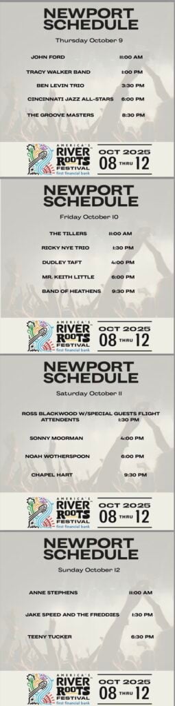 Be ready for the happy sounds of steamboat calliopes and the loud blasts of cannons as Newport, the Southbank of the Ohio River, will be ablaze with America’s River Roots activities for the remainder of this week.