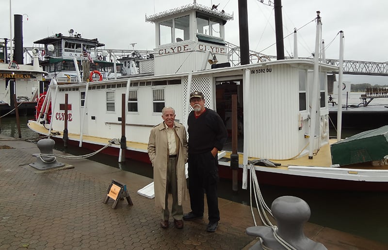 The NATCHEZ, of course, wasn’t the only boat in attendance at River Roots, though it certainly gained the most attention. The boat closest to my heart, however, was the only other steamboat in attendance– the 111-year-old BELLE OF LOUISVILLE, the first steamboat I worked on, 66 years ago, when it was named the Steamer AVALON.