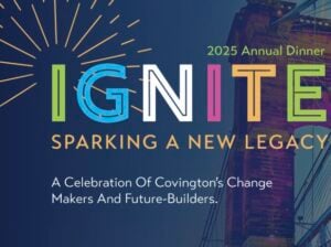The theme, “Sparking A New Legacy” symbolizes the spark of innovation, leadership and connection that’s fueling Covington’s current and future success. It reflects the role CBC plays in accelerating progress — through advocacy, collaboration and celebration. With major developments like the transformative 250-acre Covington Central Riverfront mixed use development effort that is essentially creating Covington’s first new neighborhood in more than a generation, and the advent of the entrepreneurial hub Sparkhaus, this theme captures the sense of now is the time.