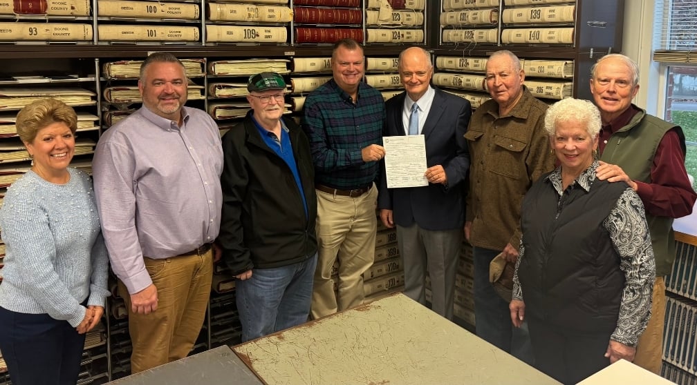 Former State Senator John Schickel, flanked by Campaign Chairmen Joe Meiman (Union) and Treasurer Keith Cahill (Burlington), filed to seek election to the Boone County Fiscal Court as one of the Court’s three County Commissioners, continuing his decades-long commitment to public service and responsible local leadership.