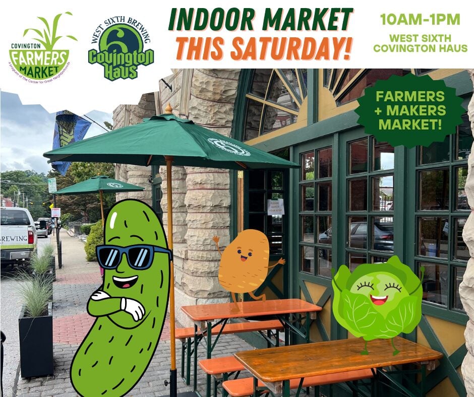 The indoor season of the Covington Farmers Market opens on November 8 at West Sixth Brewing’s Covington Haus, which opened early this year at 100 West Sixth Street, just steps away from the new outdoor market location along Washington Street.