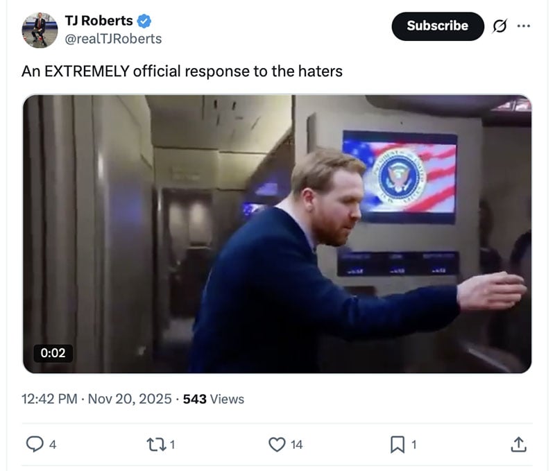 Now we have state Rep. TJ Roberts responding to a female citizen’s email with an AI-generated video of himself, superimposed over President Donald Trump, as the president said to a female reporter, “quiet, piggy.”