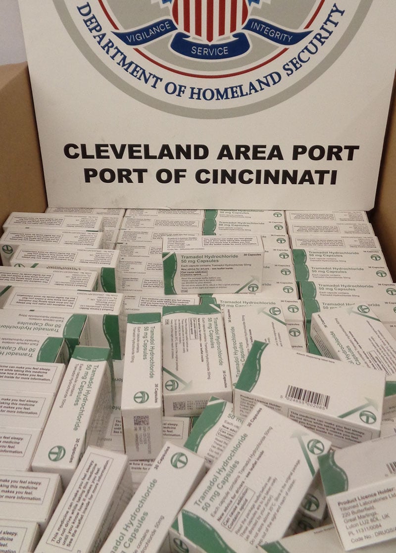 U.S. Customs and Border Protection officers in Cincinnati seized a shipment on December 4 containing 30,000 Tramadol tablets, a schedule IV substance under the Controlled Substance Act.