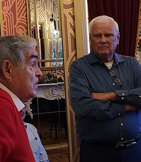 Bob Griffin, at right, shares a story with Dr. James Claypool, who oversaw the creation of athletics at Northern when he was Dean of Students. (Photo provided)