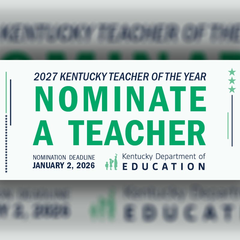 Please fill out the 2027 Kentucky Teacher of the Year nomination form to nominate a teacher today. Once again, nominations close on Jan. 2.