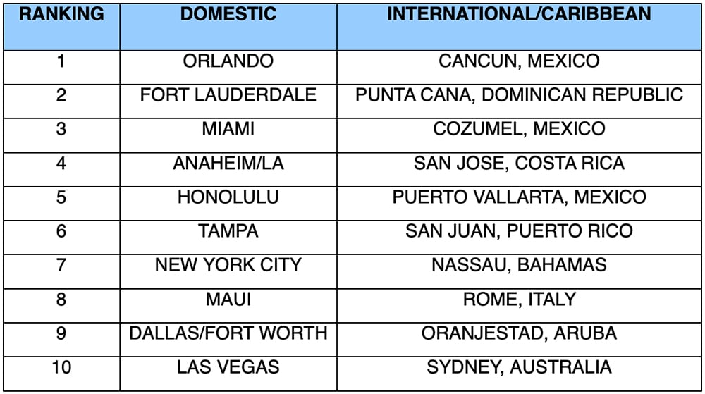 The top holiday destinations listed below are based on AAA booking data for the year-end travel period. Warm destinations dominate the domestic side with travelers heading to Florida, Southern California, and Hawaii. Caribbean destinations and resort towns in Mexico are also popular to celebrate the year-end holidays and ring in 2026.