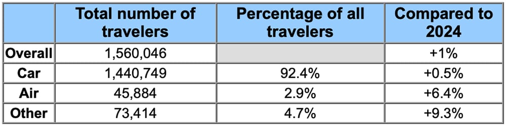 Nationally, AAA forecasts that 4.9 million will travel by modes of transportation other than automobile or by air, about 4% of all travelers across the country. This is a 9.1% increase compared with the end-of-year holiday travel season in 2024.