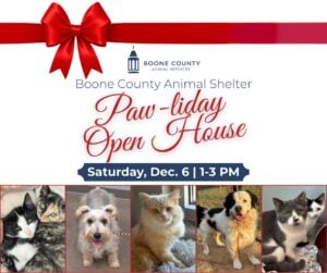 Boone County Animal Services is hosting a Paw-liday Open House. The shelter is located in Burlington. There will be holiday treats, photo-op, toy drive, and meet-and-greet with adoptable cats and dogs. If you bring a new, unwrapped toy for their toy drive the adoption fee will be waived. All toys will go to local children.