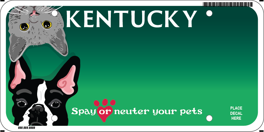 The new license plate raises awareness of the need to reduce the population of stray and homeless animals in Kentucky. During its lifetime, sales have equated to more than $600,000 in grants being awarded to organizations, resulting in more than 17,200 cats and dogs being spayed or neutered.