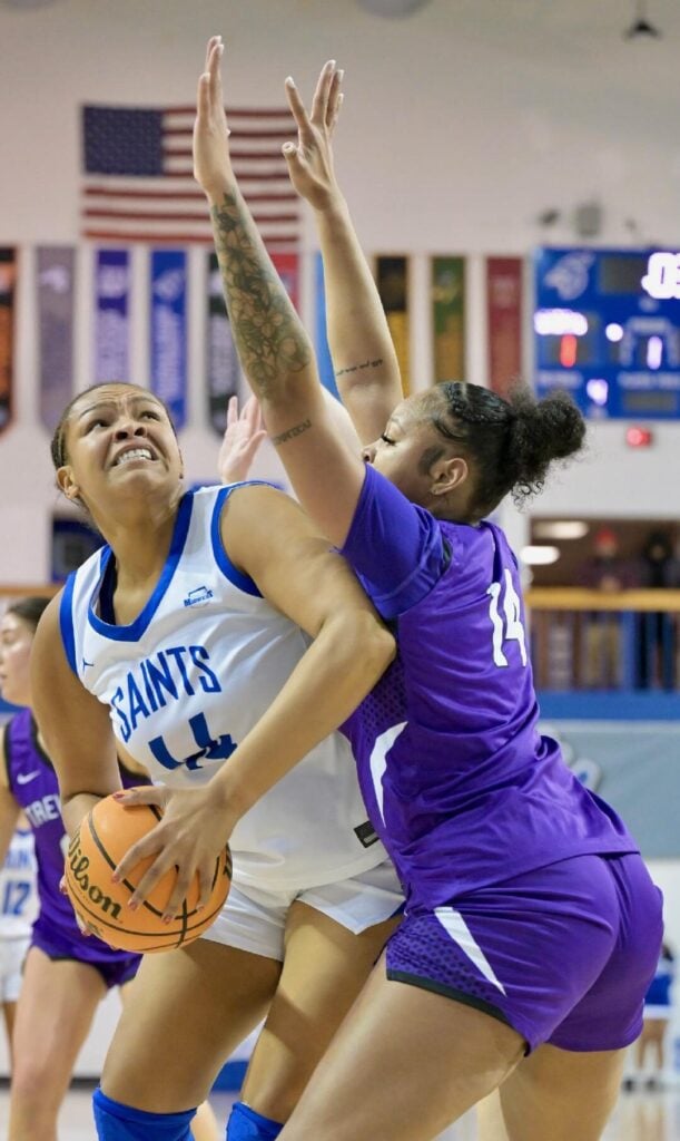 Izzy Rotert, a 5-10 junior from Cincinnati Mercy McAuley, added 11 points with eight rebounds in a game in rounding out the quartet of Saints’ double-digit scorers. Morgan Hunt, a 5-10 junior guard from Hollansburg, Ohio, added nine points with eight rebounds in rounding out the starters.