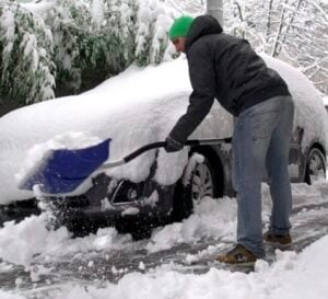 • Shovel safely. If you have to clear off the sidewalks and driveway, start gradually and pace yourself. Ideally, push or sweep the snow rather than lifting and throwing it, that action involves a little less exertion. Pay attention to your body and if something doesn’t feel right, stop.