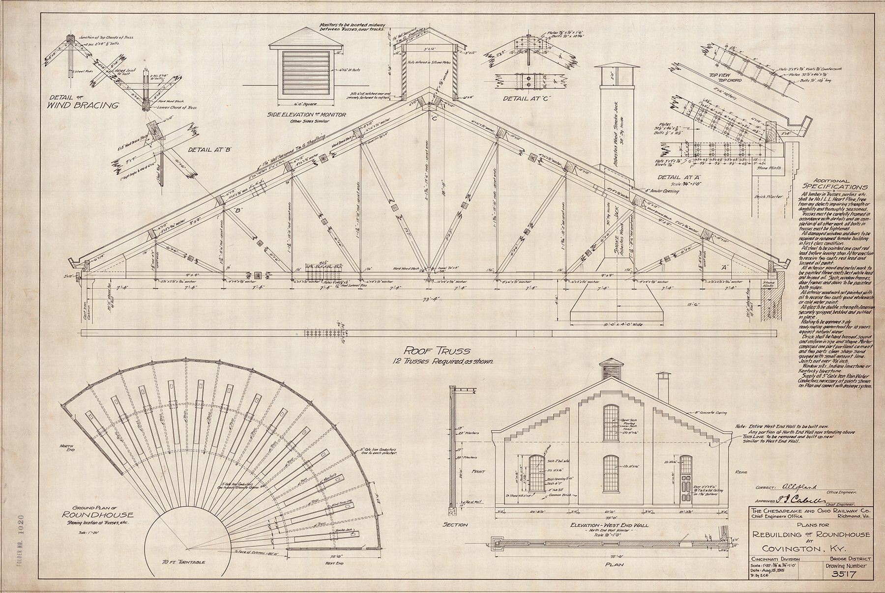 In 1904, the C&O built a brick four-story office building at the complex. A tornado in 1915 seriously damaged the property. The office building and roundhouse were repaired and rebuilt.
