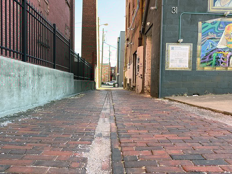 For Huelsman, alleys are a window into a city’s past. Because they’re out of sight, they’re typically less susceptible to changes and upgrades. Covington’s main thoroughfares which once were paved by stone blocks and bricks have mostly been resurfaced with asphalt. An alley, Huelsman said, “lends itself to be a much more dynamic, texture-rich environment.”