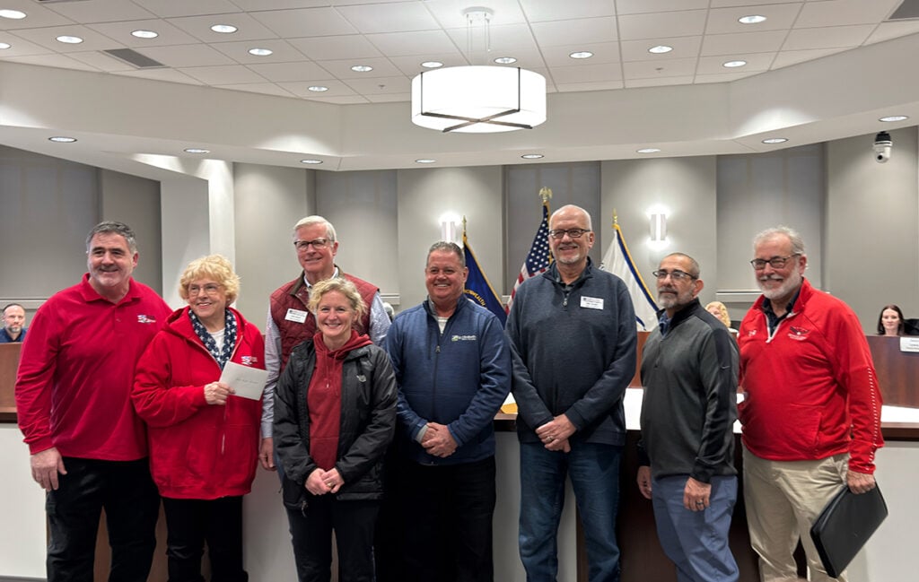 Representatives from the St. Elizabeth Healthcare Honor Run Half Marathon and Honor Flight Tri State posed for photos at the Jan. 27 Florence City Council meeting. (Photo by David Rotenstein)