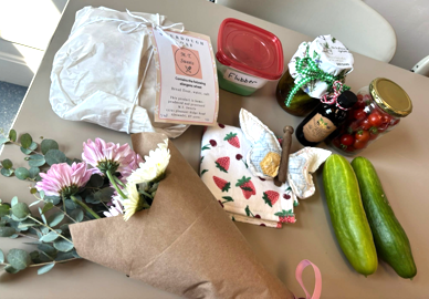 Items commonly exchanged include baked goods, handmade crafts, sewn or crocheted pieces, pantry staples, seasonal décor, and other home-focused items. The swap follows a “bring five, take five” format to keep the exchange balanced, and all baked goods must include a full ingredients list.