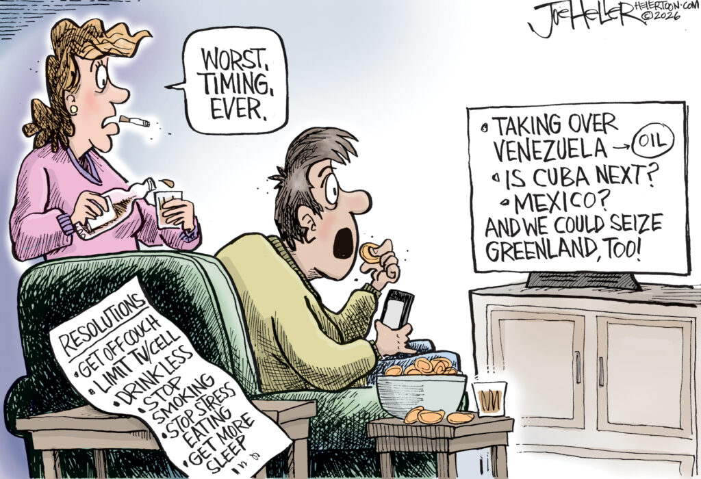 Joe Heller: Cartoonist on news — Venezuela, flu, bad timing, AI, salt for ICE