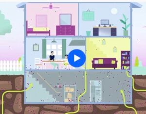 Radon is a naturally occurring radioactive gas emitted from the soil that can accumulate indoors. It is colorless, odorless and tasteless. Radon can enter a home through cracks and openings in walls, basements, floors and foundations. It does not matter if the building is new or old, well-insulated or drafty, or has a basement or not. Once indoors, radon can build up to dangerous levels and release radioactive particles that attack your lungs with dangerous, cancer-causing radiation. There is no known safe exposure level.