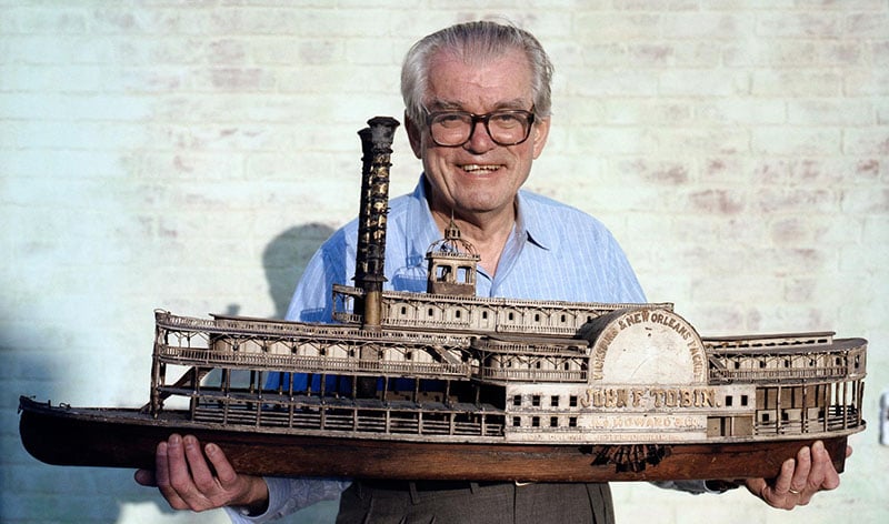 Another collector of steamboat memorabilia Benton Roblee Duhme, of St. Louis, the scion of a St. Louis family that owned a major shoe-manufacturing company (Buster Brown and Roblee Shoes), was also the premier steamboat buff on the river. However, he suffered from a fatal disease that would soon claim his short life. With his doctor’s permission, Benton finished the final segment of the 1970 “Last Trip” of the DELTA QUEEN, when the SOLAS, or “Safety at Sea Law,” threatened to permanently remove the QUEEN from carrying more than 50 overnight passengers. Benton’s experiences as a crewman on the DELTA QUEEN’s eventful and historical journey from St. Louis to New Orleans became fodder for an earlier TRIBUNE article: