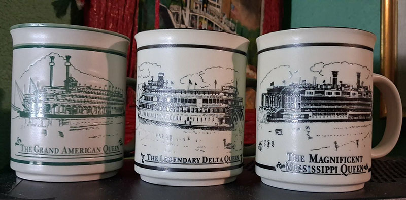 After posting a photo of an AMERICAN QUEEN coffee cup, steamboat buff Christopher L. Purdom of Rising Sun made a proposal I couldn’t refuse. He offered matching DELTA QUEEN and MISSISSIPPI QUEEN mugs for the taking. Much to my surprise, Chris included a framed print of the stack insignia identifier published by the WaterWays Journal.