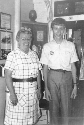 “Benton also collected all sorts of souvenirs from the DELTA QUEEN. But when he wanted a fire ax, the Captain told him the boat would need it later after getting her exemption, so Benton bought a Coast Guard-approved duplicate from a ship’s chandler on Canal Street. Carefully, the steamboat aficionado re-lettered the handle with the boat’s name and swapped the two with Captain Wagner’s approval. Young Duhme wore the funniest-looking officer’s boat cap he found in the trash that puffed up and made him resemble the Pillsbury Doughboy. Especially odd was the fact that Benton always dressed immaculately in a tweed jacket and bow tie– even when he was scrubbing pots and pans in the dish room with a yellow, rubber apron thrown over his expensive clothing.”