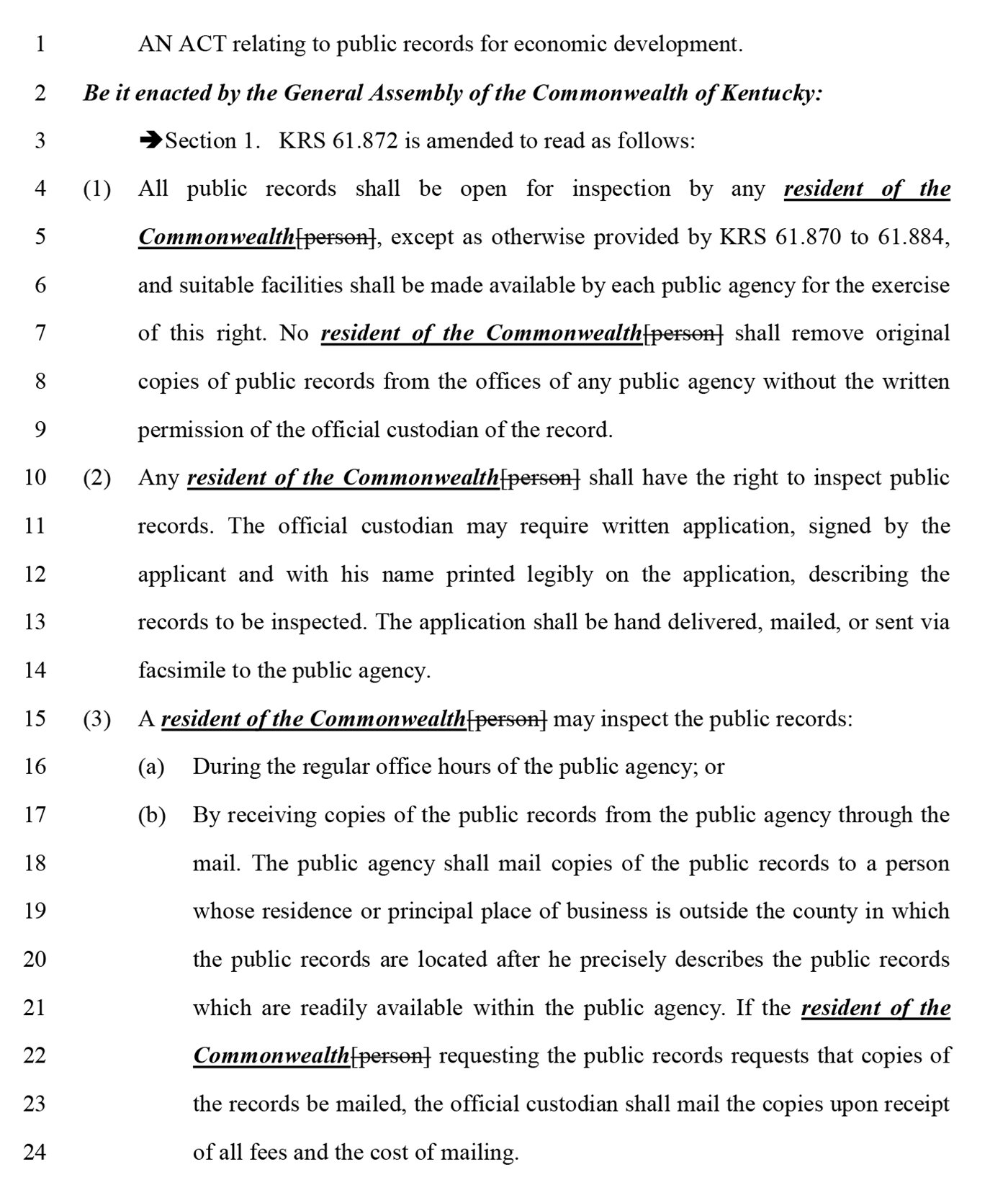 Bensenhaver finds the Kentucky residency requirement imposed by 2019 revision to the law deeply problematic. It erects unnecessary and easily circumvented barriers to public records.
