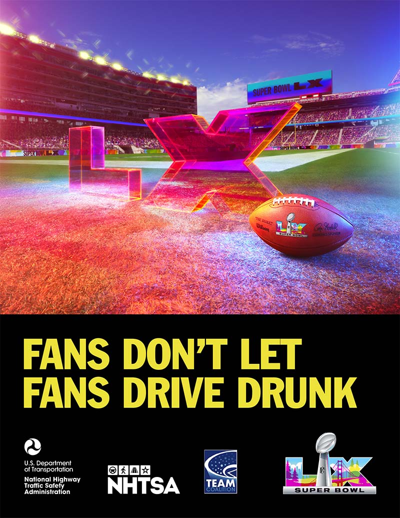 “The choice to drive sober is a choice to save lives,” said Transportation Secretary Jim Gray. “Together, we can eliminate impaired driving crashes and prevent deaths by planning ahead, because everyone getting home safely is something we can all celebrate – no matter who wins the game.”