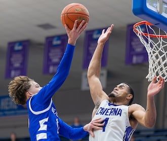 Part of Caverna’s size came from recently eligible Gavin Lightning, a 6-foot-6 wing who transferred from Columbus, Ohio. He had 12 points and 14 rebounds in the win.