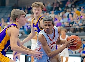 The third quarter stayed tight with four lead changes and three ties. Lyon County senior guard Bray Kirk, who was later named the tournament’s most valuable player, scored seven of Lyon County’s 13 points in that period to give his team a 33-32 edge heading into the fourth.