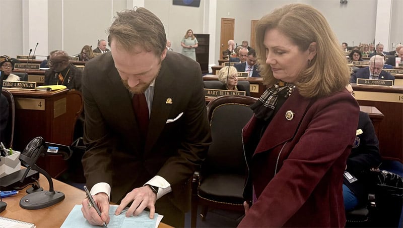 Reps. T.J. Roberts and Kim Moser file House Bill 1 that would allow Kentuckians to take part in federal scholarship tax credits. (Photo from Kentucky Today)