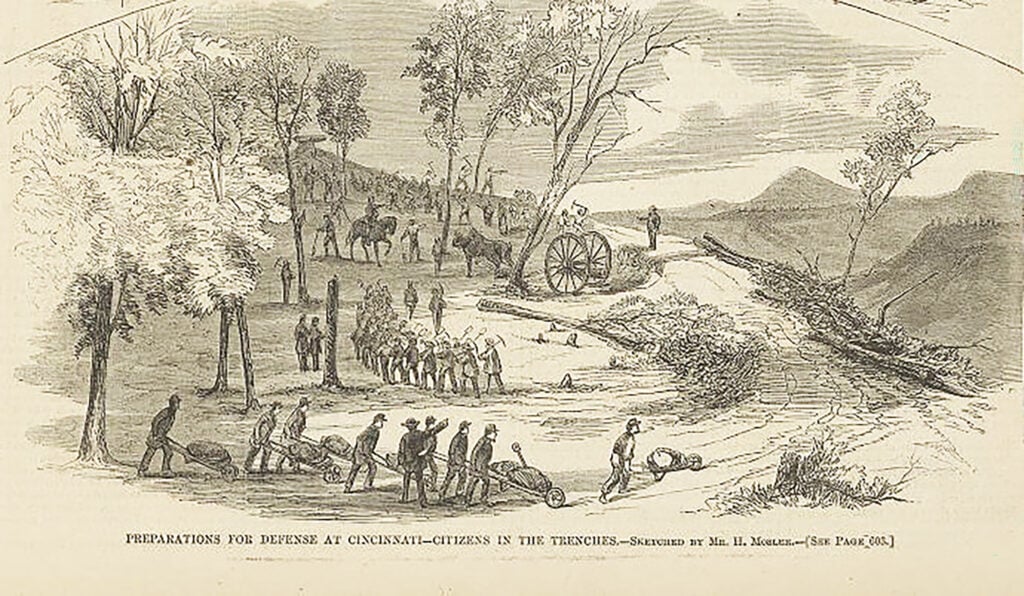 On September 1, 1862, Union Major General Lew Wallace, who commanded the Union Army of Kentucky before it was taken over by General Nelson, arrived in Cincinnati, Ohio. He had been assigned to protect the city from an approaching Confederate force led by Brigadier General Henry Heth. General Wallace immediately declared martial law in the cities of Cincinnati as well as Covington and Newport, calling for civilian laborers. As many as 72,000 residents and volunteers responded to his call (Vernon L. Volpe, “‘Dispute Every Inch of Ground’: Major General Lew Wallace Commands Cincinnati, September, 1862,” “Indiana Magazine of History,” vol. 85, no. 2, 1989, p. 139).