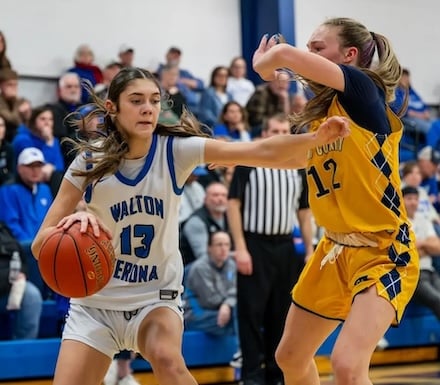 Junior guard Elin Logue’s third 3-pointer put Walton-Verona ahead, 33-27, going into the fourth quarter.