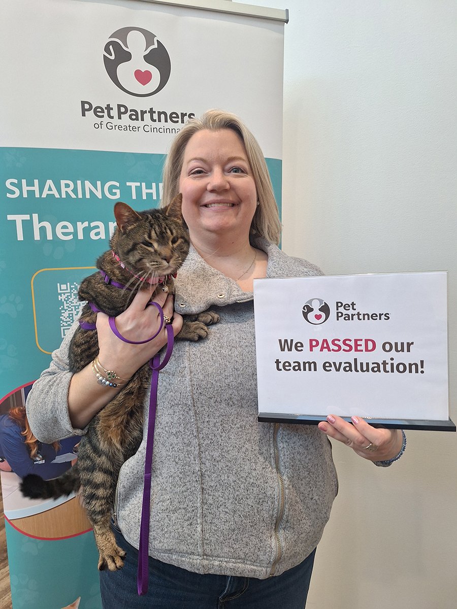 Doug — no last name — is one of Northern Kentucky’s newest therapy pets. The three-year old tabby and his human handler, Dr. Andrea Nieman, on Feb. 21 passed an evaluation administered by Pet Partners of Greater Cincinnati. The new certification will enable Doug (and Nieman) to visit schools, medical care facilities and other places where people might benefit from snuggling with a furry friend to relieve stress.