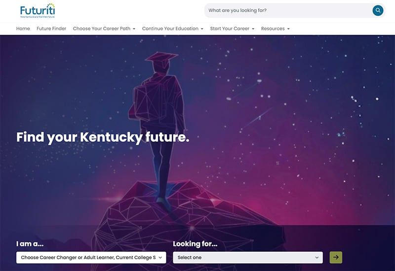 Kentuckians now have a new, more user-friendly way to find what they’re looking for on Futuriti.org, a career and education exploration website maintained by the Kentucky Council on Postsecondary Education (CPE). A new homepage allows visitors to select who they are to narrow down what they’re looking for on the site.