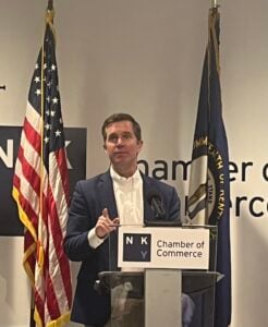 Gov. Beshear expressed gratitude for the Northern Kentucky Chamber’s support of Pre-K for All. He touted the economic growth in the region. According to Beshear, Pre-K for All will help ensure the workforce pipeline remains strong.