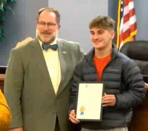 Independence Mayor Christopher Reinersman honored members of the Simon Kenton Swim and Dive team with two proclamations. One was for Senior Isaiah Reinhart, who was featured as the 2026 KHSAA Athlete of the Year for Swim and Dive, and because his career has been so meteoric, the city gave him March 3 as his own personal day in the city.