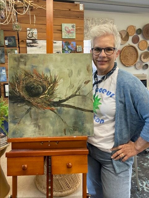 She said when she was in high school her dad put her in private lessons with a teacher in Walton who took her into her adult classes, and she said that started her on a path to becoming more serious about realizing an artist’s career, and creating her own works. The teacher was a German immigrant and taught a very traditional style of oil painting.