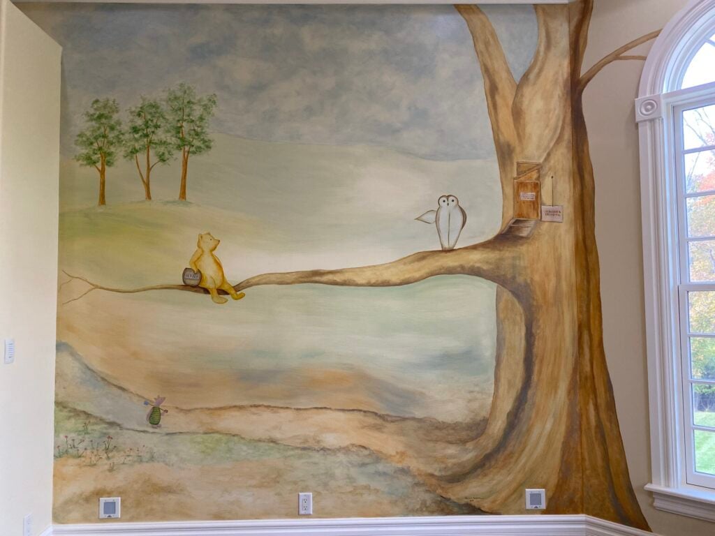 “Sometimes they would want something specific, like Winnie the Pooh, or sometimes just a storybook theme,” she explained. “Recently I did a whole mural for a home in the Indian Hill area that was the classic Winnie the Pooh look. I think of myself as a chameleon because I am usually able to replicate whatever style they’re looking for.”